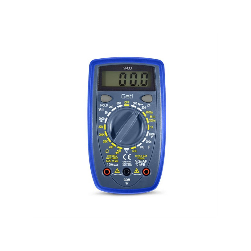 Spolehlivý kapesní multimetr s digitálním displejem, který zobrazí až 4000 číslic. Ideální nástroj pro měření stejnosměrného i střídavého napětí a proudu, odporu, kapacity a spojit